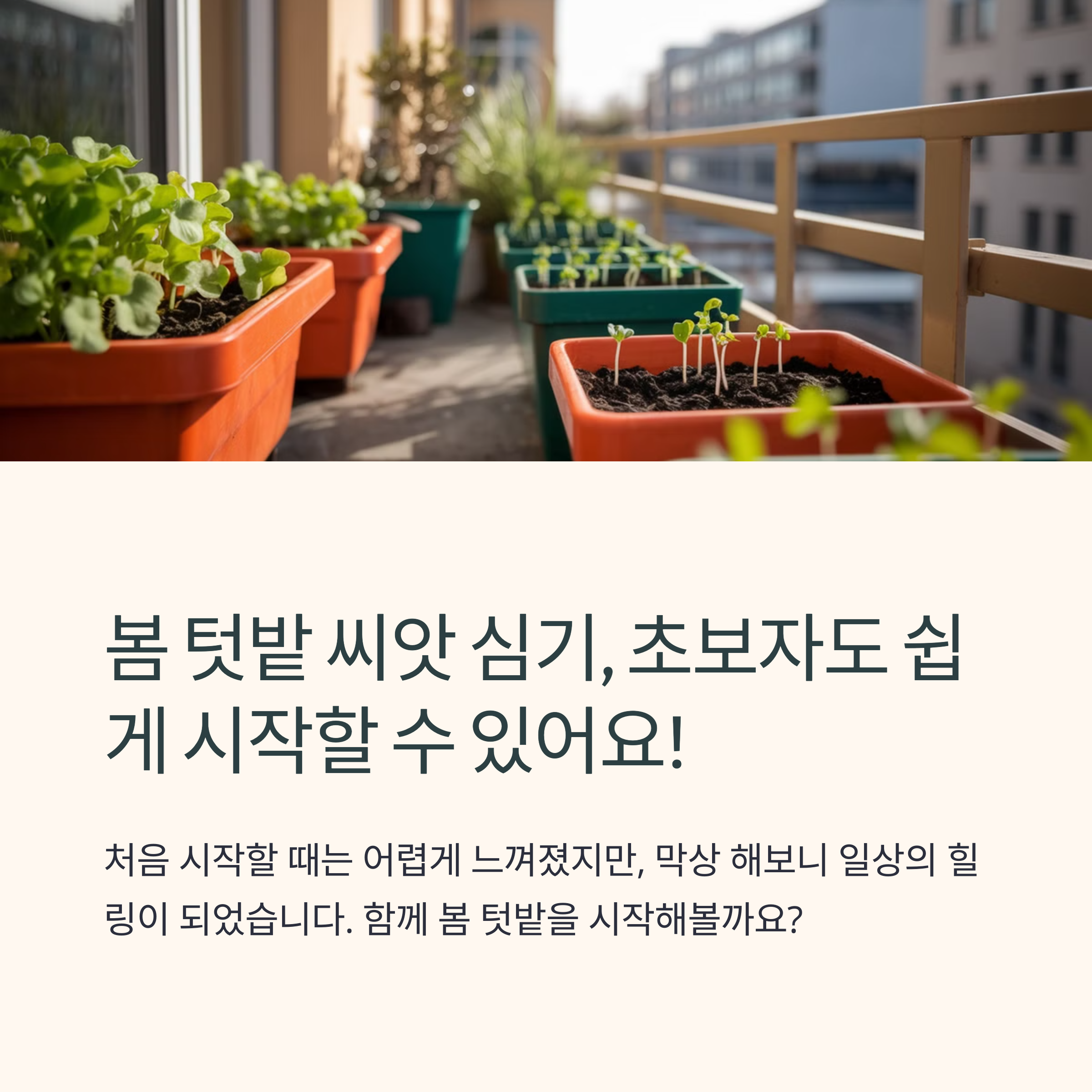 씨앗을 심고 기다리는 과정은 단순하지만 묘하게 힐링되는 순간들이 많습니다. 저처럼 처음 시작해보는 분들에게는 봄 씨앗 심기가 가장 쉬운 첫걸음이 될 겁니다.